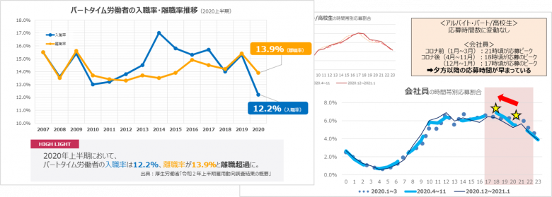 また職業や時間帯などの軸で応募者の傾向分析を行ない、どの属性の応募数が増えているのか、応募時間帯に変化が見られたかといったテーマで分析結果をお伝えしました。
